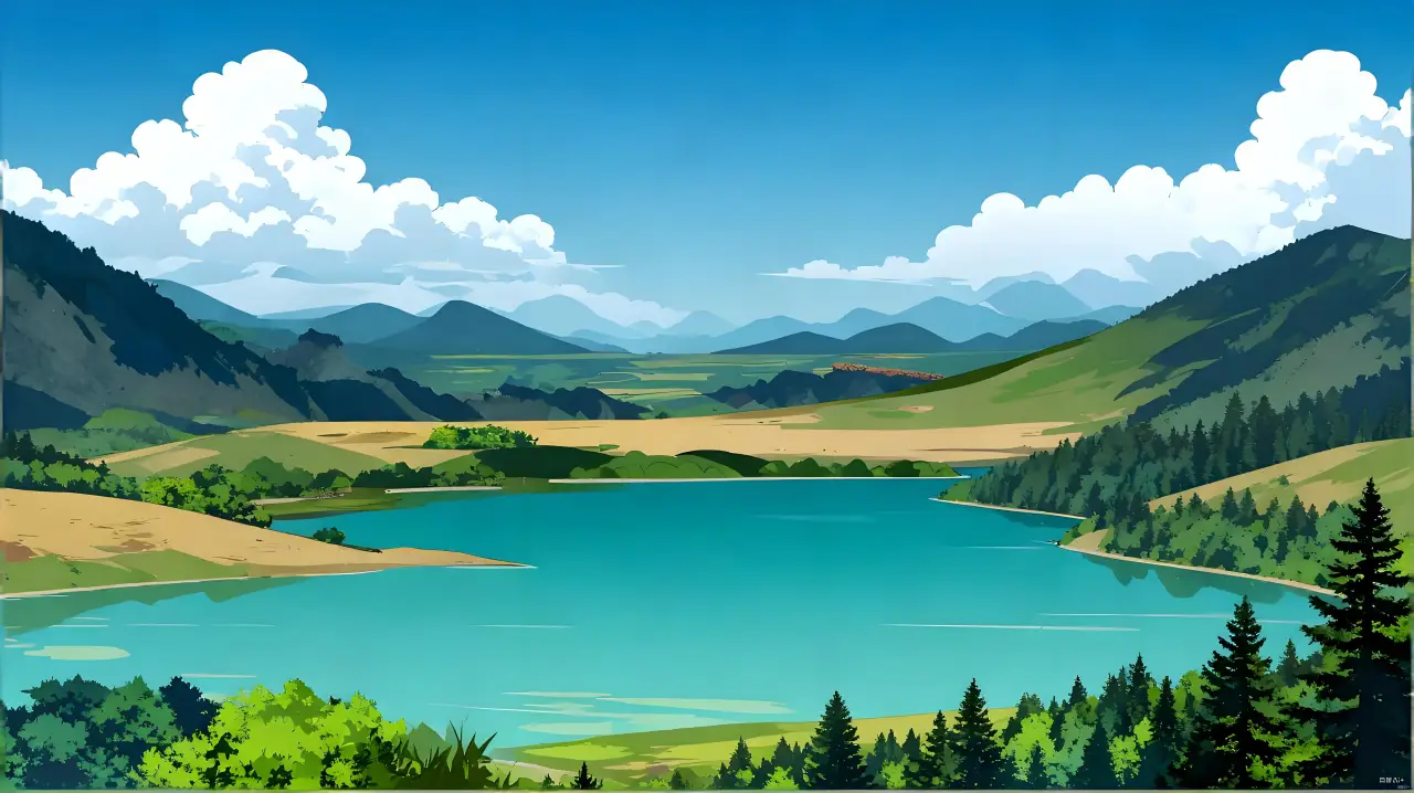 水库湖泊全景视角